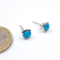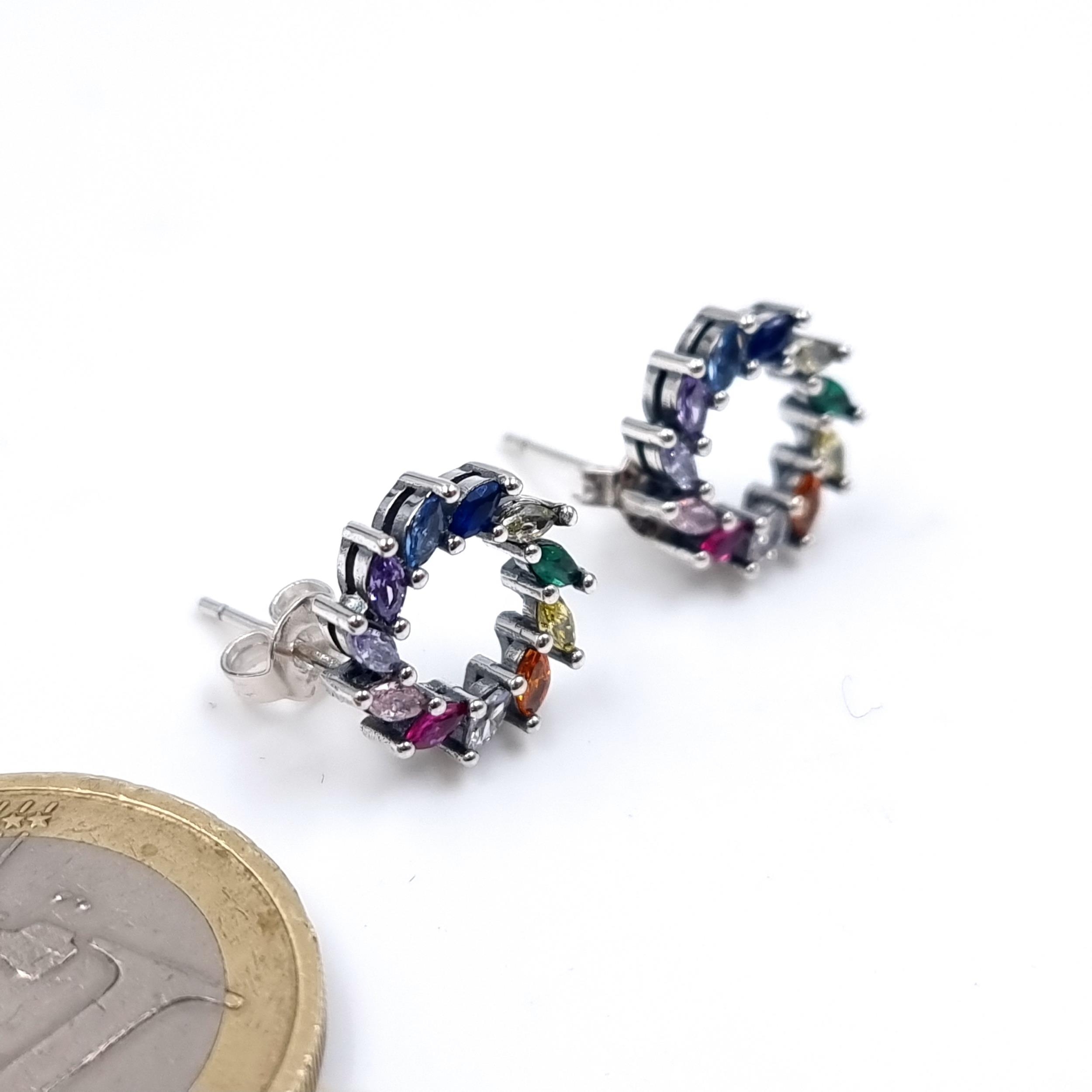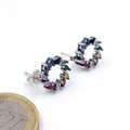 A pair of sterling silver 925 stud earrings set with ruby and aquamarine gemstones. Weight 2.67 grams.
