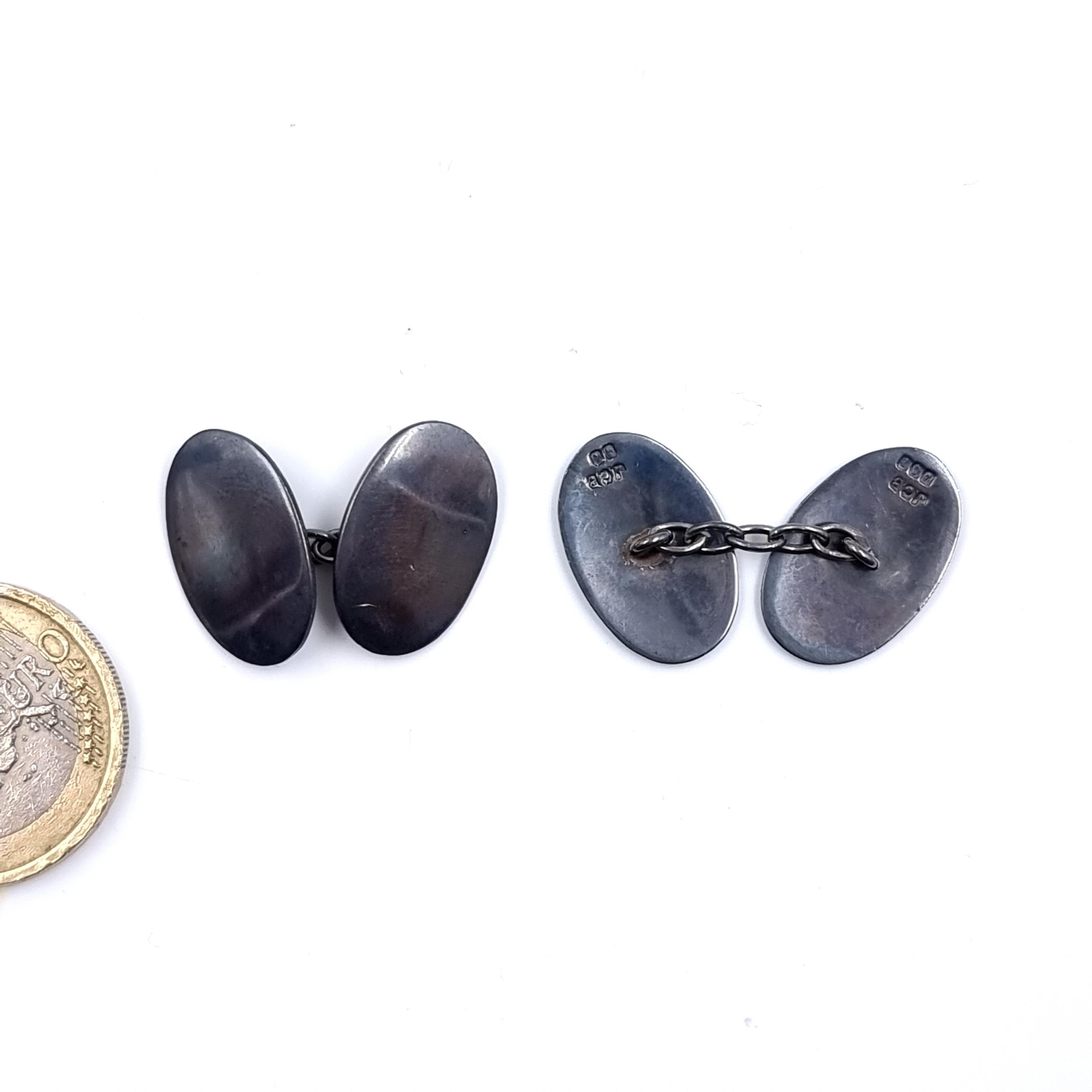 A pair of chain link Irish silver, 1977, cufflinks. Total weight 6.16 grams. Boxed. Will polish up lovely .